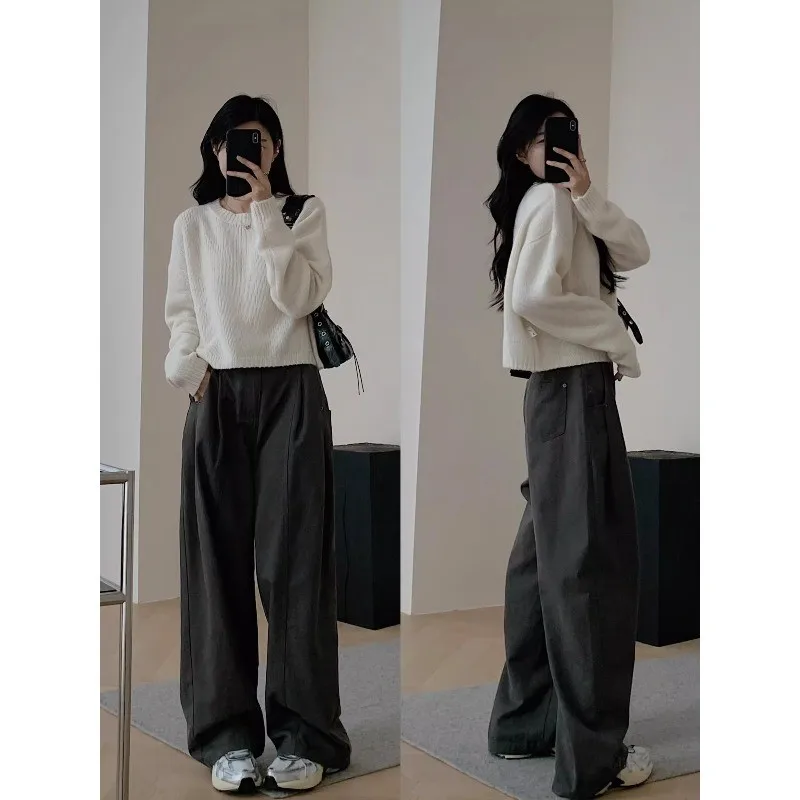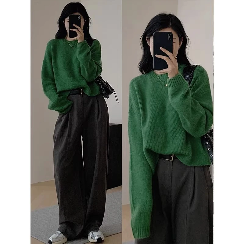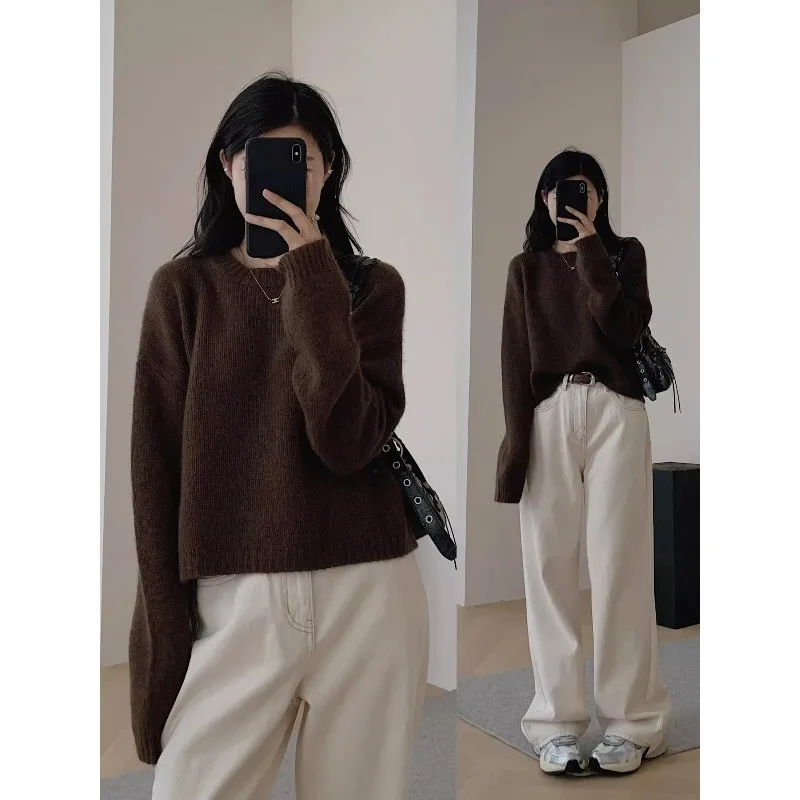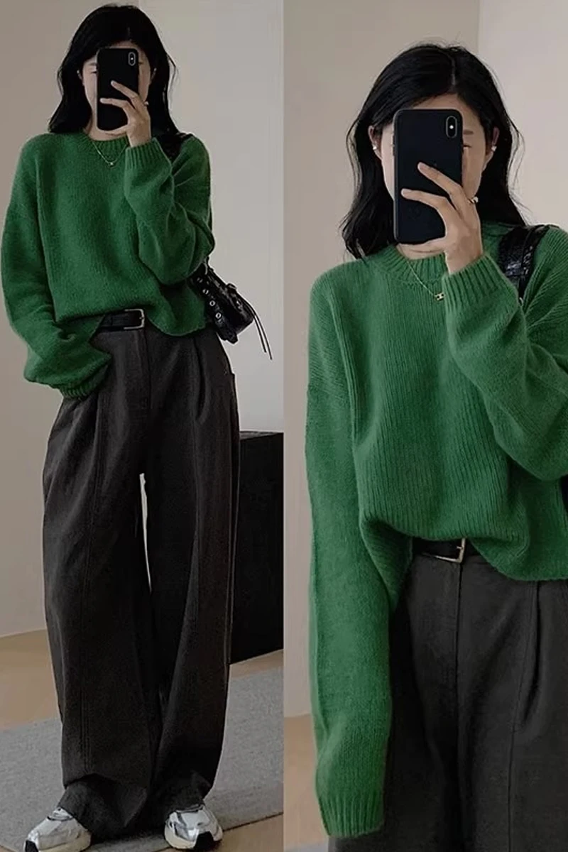 Featuring a classic round neckline and long sleeves, this sweater exudes a timeless elegance that never goes out of style.